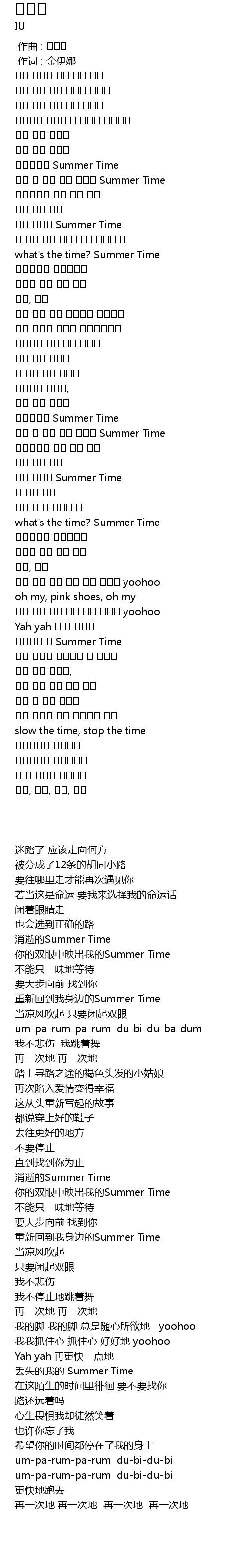 | [00:53.570] | 너의 두 눈이 나를 비추던 Summer Time |