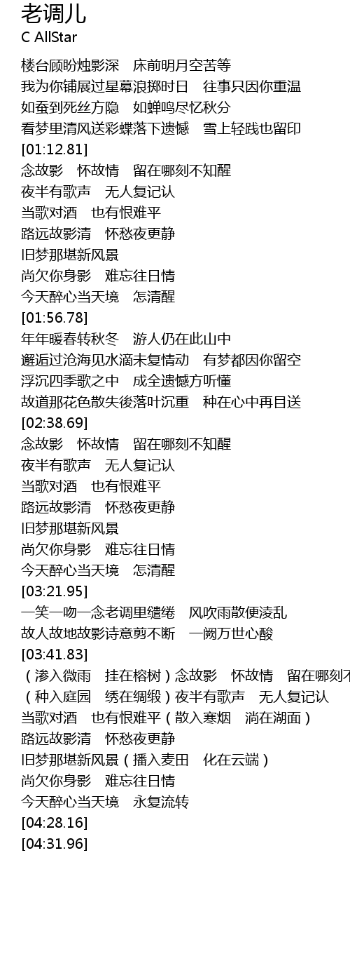 | [01:15.43] | 念故影 怀故情 留在哪刻不知醒 |
