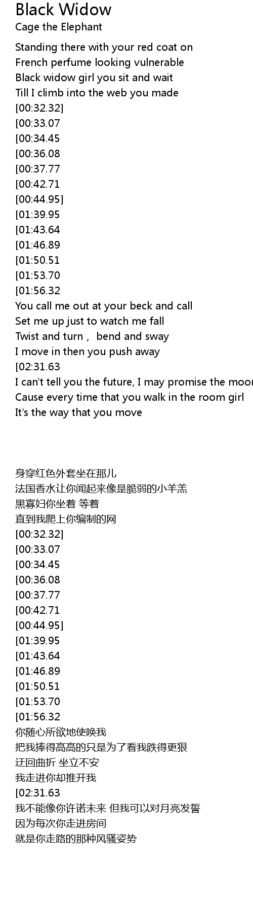 | [00:25.02] | Black widow girl you sit and wait |