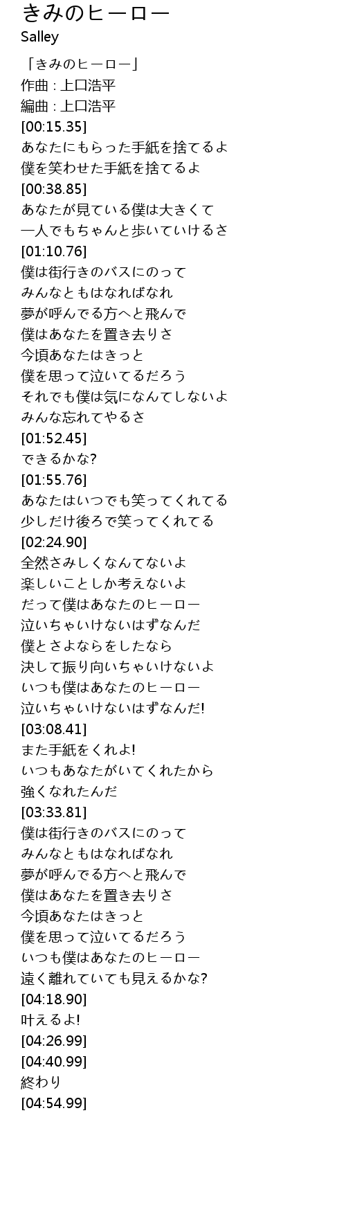 | [02:57.37] | いつも僕はあなたのヒーロー |