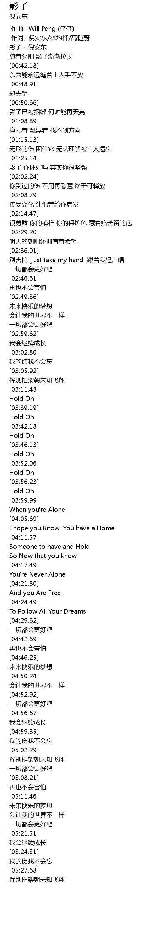 | [01:51.35] | 影子 你还好吗 其实你很坚强 |