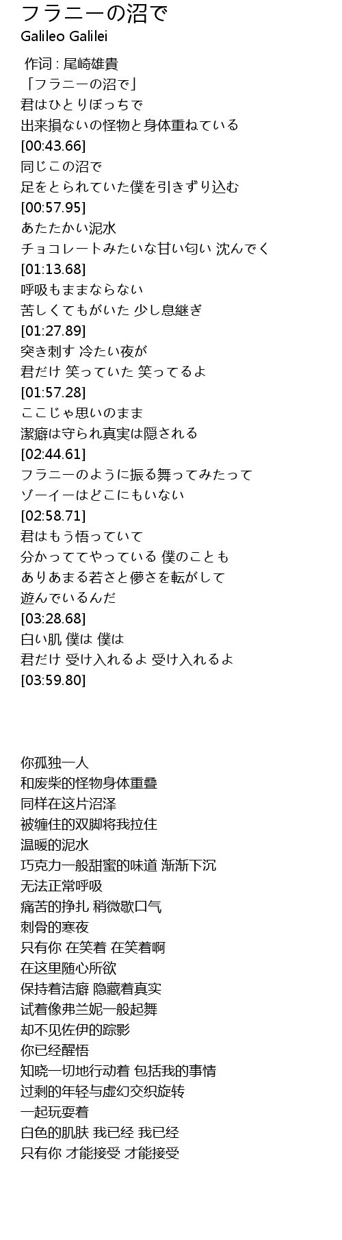| [00:35.25] | 出来損ないの怪物と身体重ねている |