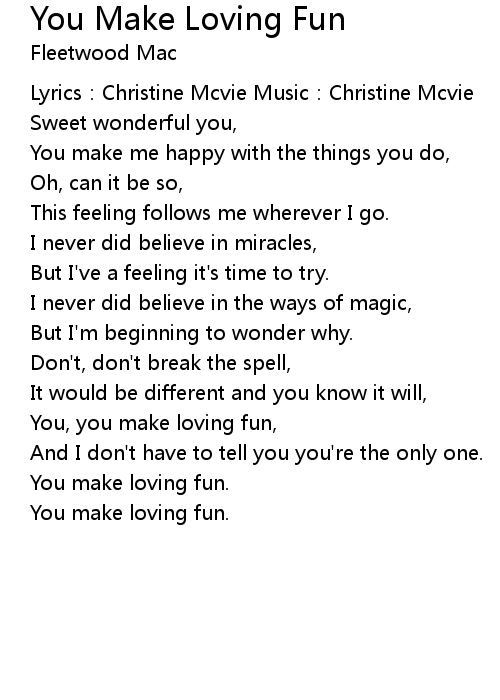 | You, you make loving fun, | |