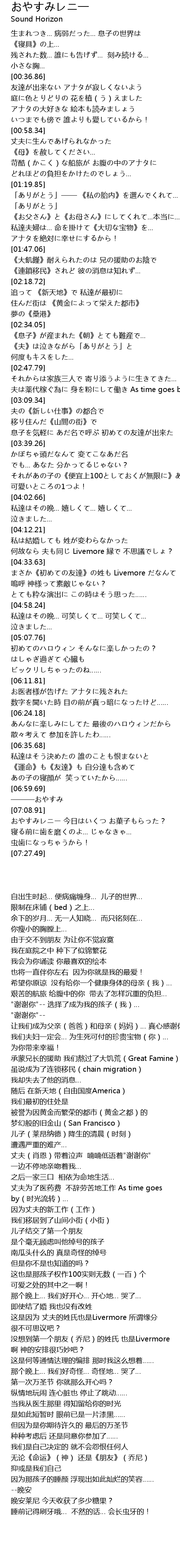 | [07:06.82] | ———おやすみ |