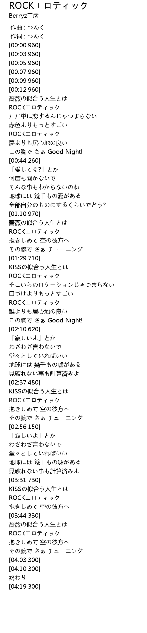 | [00:18.110] | ROCKエロティック |