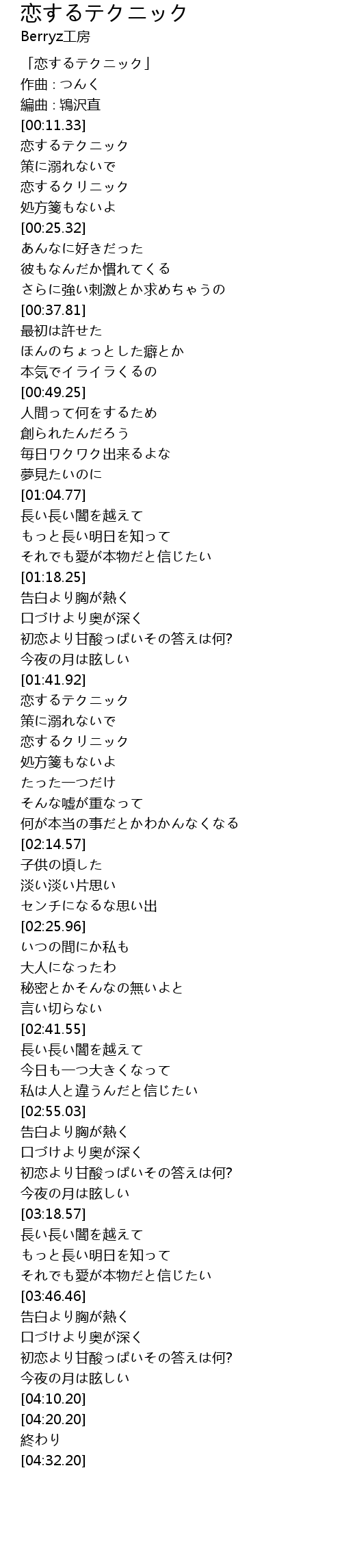 | [00:00.33] | 「恋するテクニック」 |