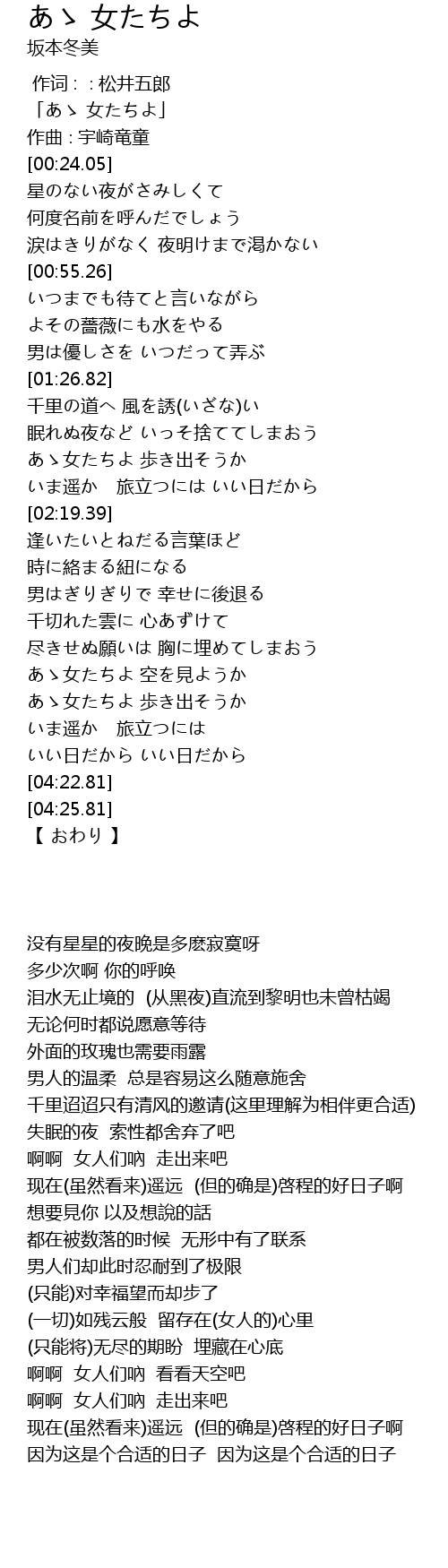 | [00:01.05] | 「あゝ 女たちよ」 |