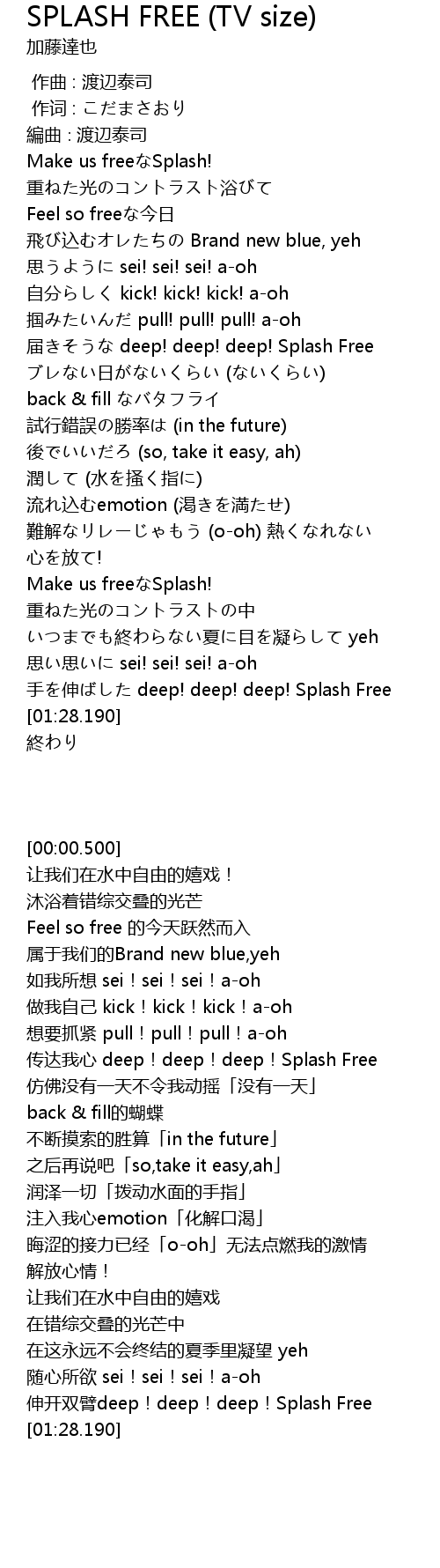 | [01:03.170] | Make us freeなSplash! |