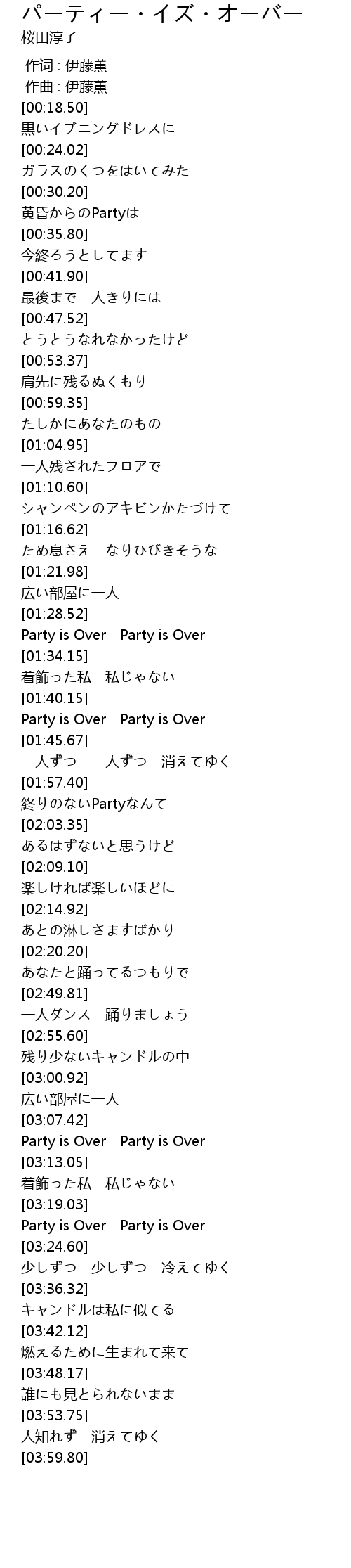 | [01:10.60] | シャンペンのアキビンかたづけて |
