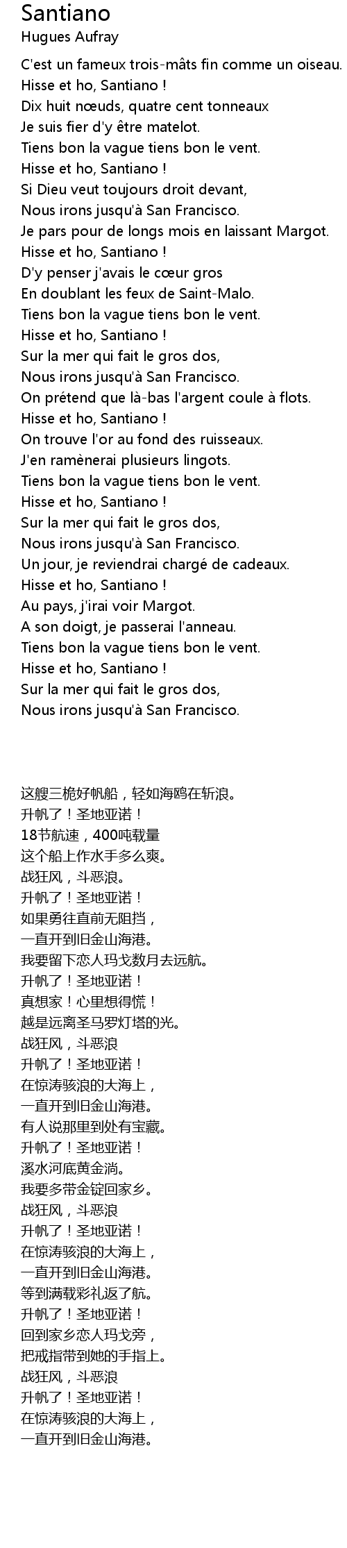 | [00:42.00] | Hisse et ho, Santiano ! |