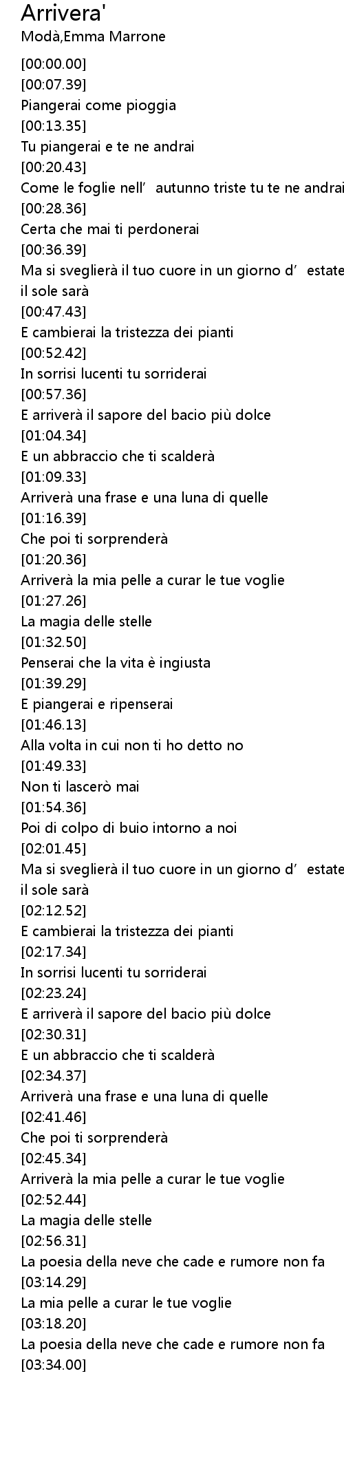 | [02:46.03] | Arrivera la mia pelle a curar le tue voglie |