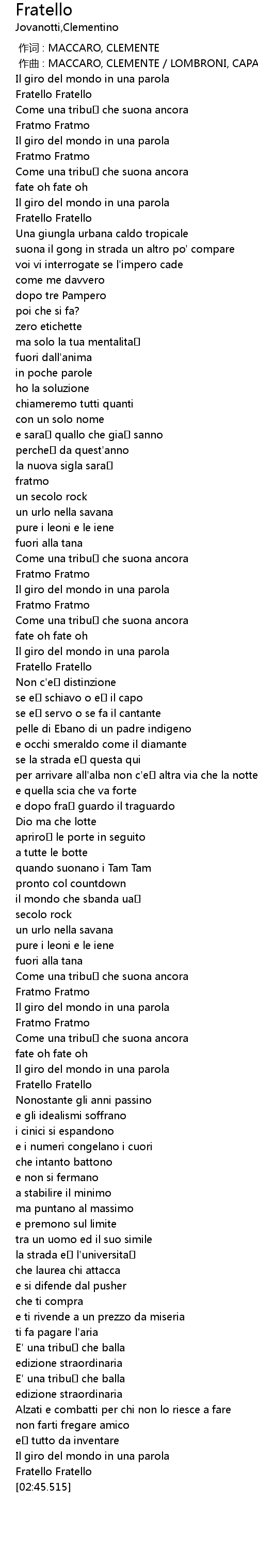 | [00:00.000] | 作词 : MACCARO, CLEMENTE |