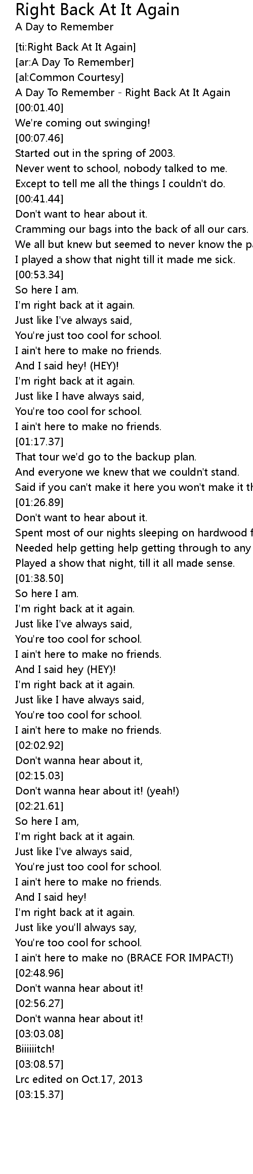 [ti:Right Back At It Again] |