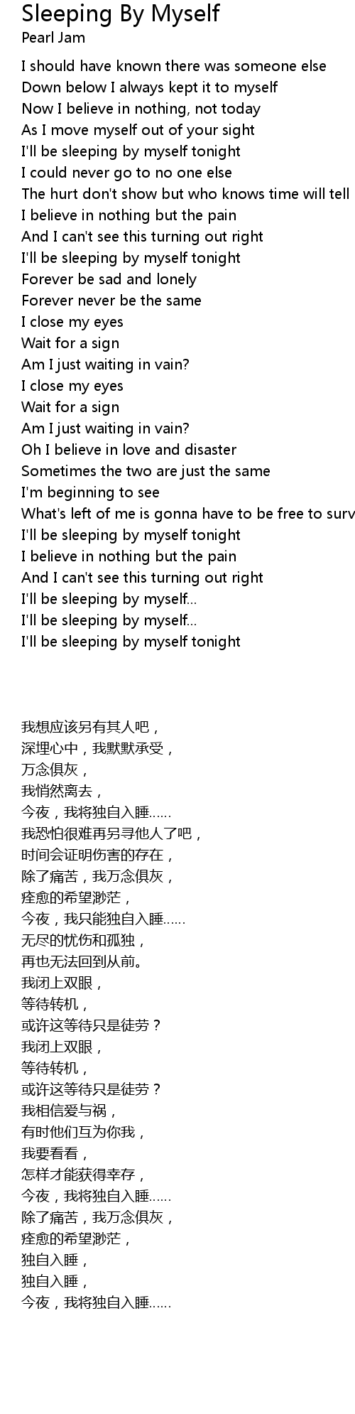 I'll be sleeping by myself tonight |