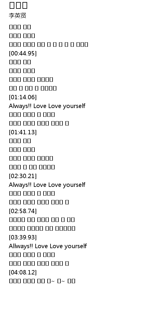 | [04:12.25] | 언제나 소중한 그댈 난~ 음~ 믿죠 |