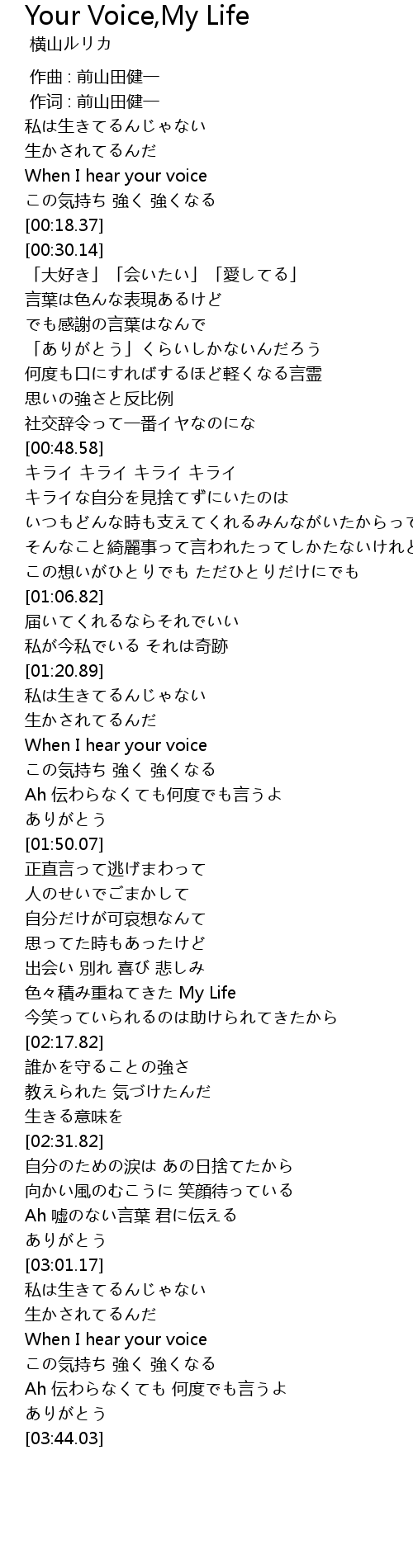 | [02:13.91] | 色々積み重ねてきた My Life |