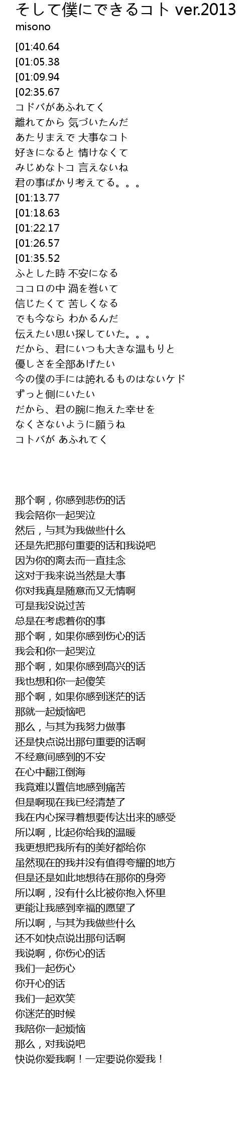 | [03:35.70][02:35.67][01:30.51][00:12.55] | そして、僕にできる何よりも大切な |