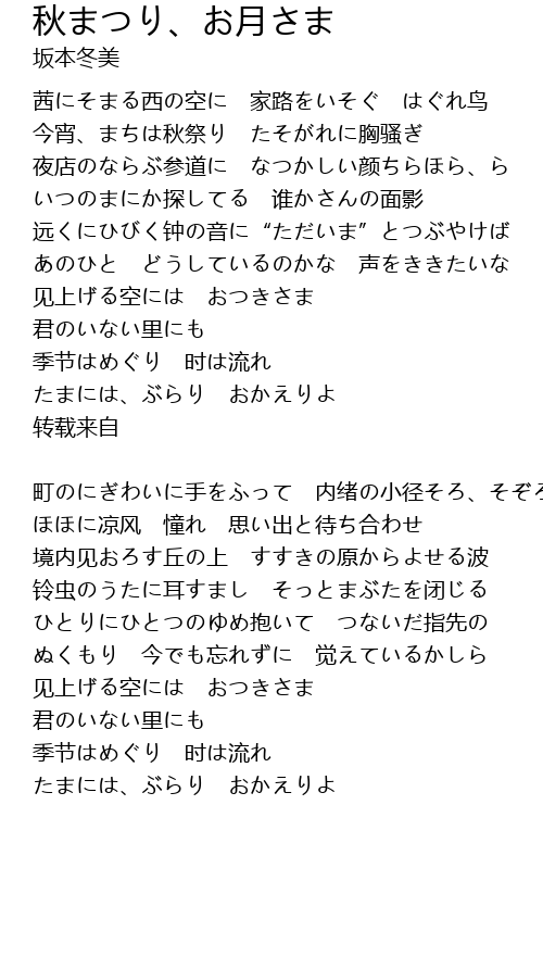 | Song | 秋まつり、お月さま |
