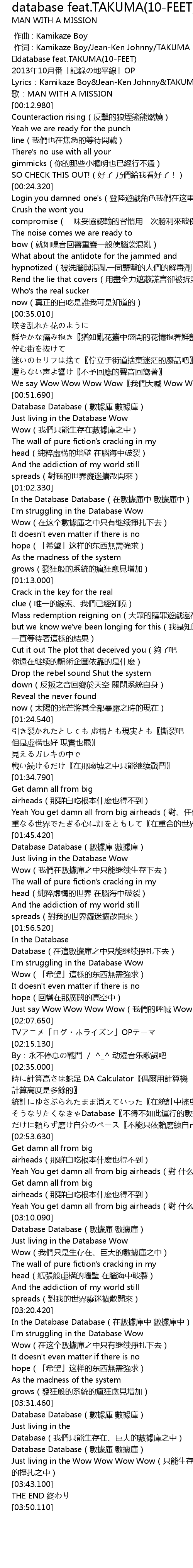 | [00:00.050] | database feat. TAKUMA 10FEET |