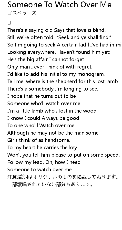 | Someone who' ll watch over me. | |