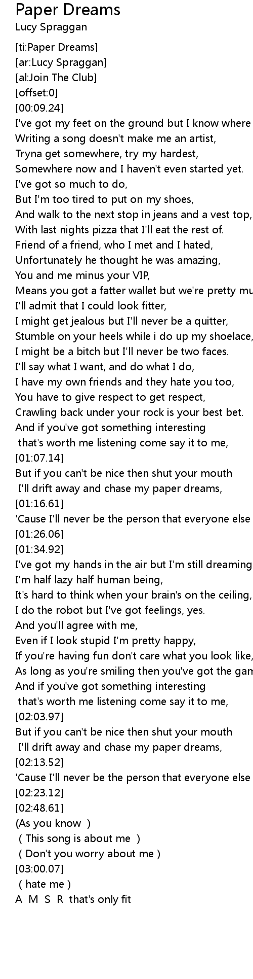 | [ti:Paper Dreams] | |