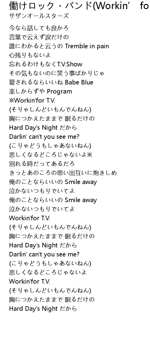 | Song | 働けロック・バンド(Workin’ for T.V.) |