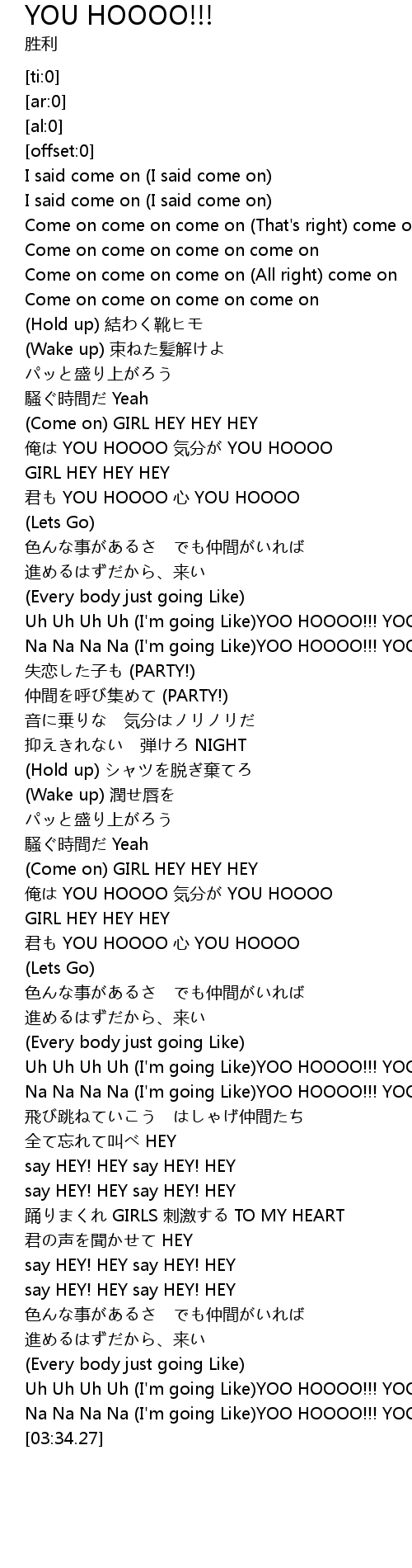 | [03:19.44] | Uh Uh Uh Uh I' m going Like YOO HOOOO!!! YOO HOOOO!!! |