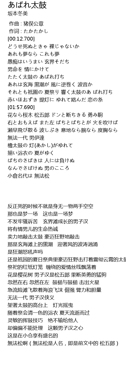 | [01:14.050] | たたく太鼓の あばれ打ち |