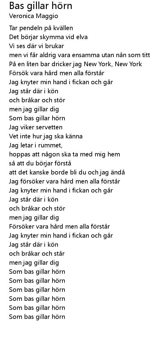 | Song | Bas gillar hörn |