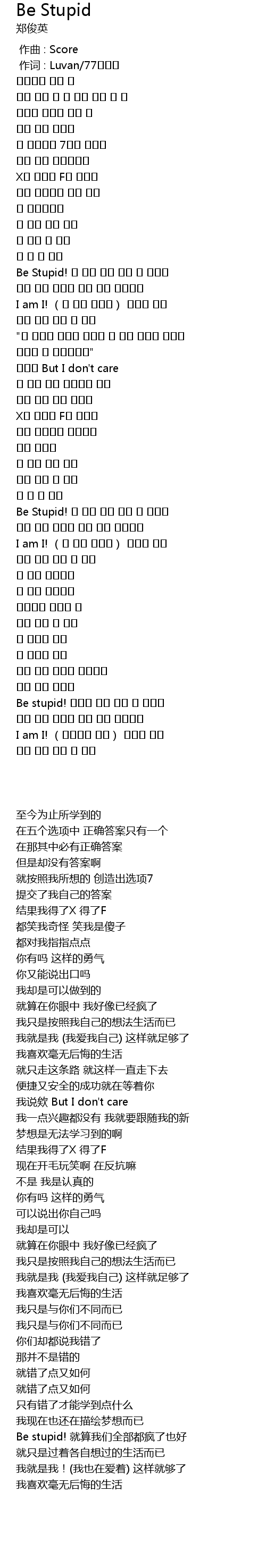| [01:10.370] | Be Stupid! |