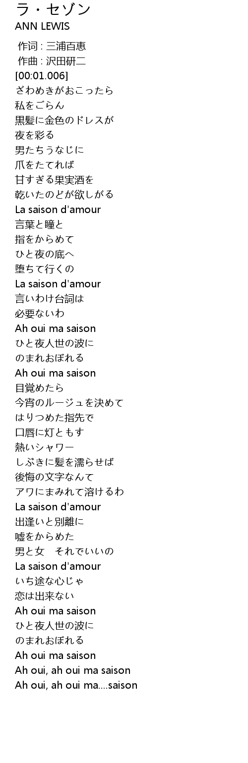 | [02:53.858] | Ah oui, ah oui ma‥‥saison |