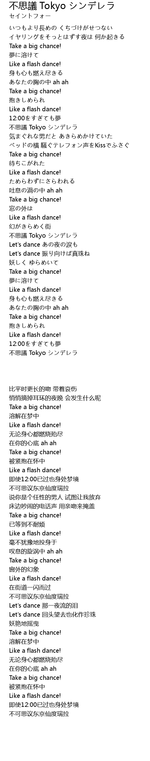 | [01:16.574] | 不思議 Tokyo シンデレラ |