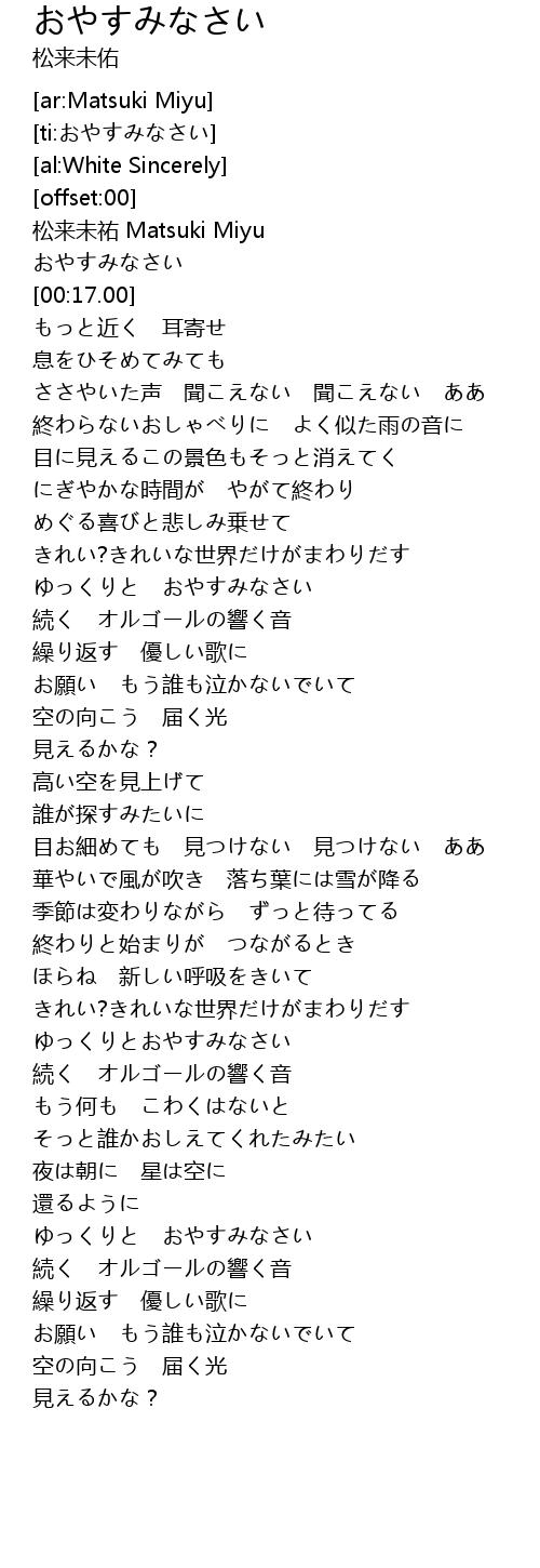 | [00:04.00] | おやすみなさい |