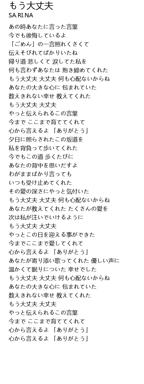 | もう大丈夫 大丈夫 | |