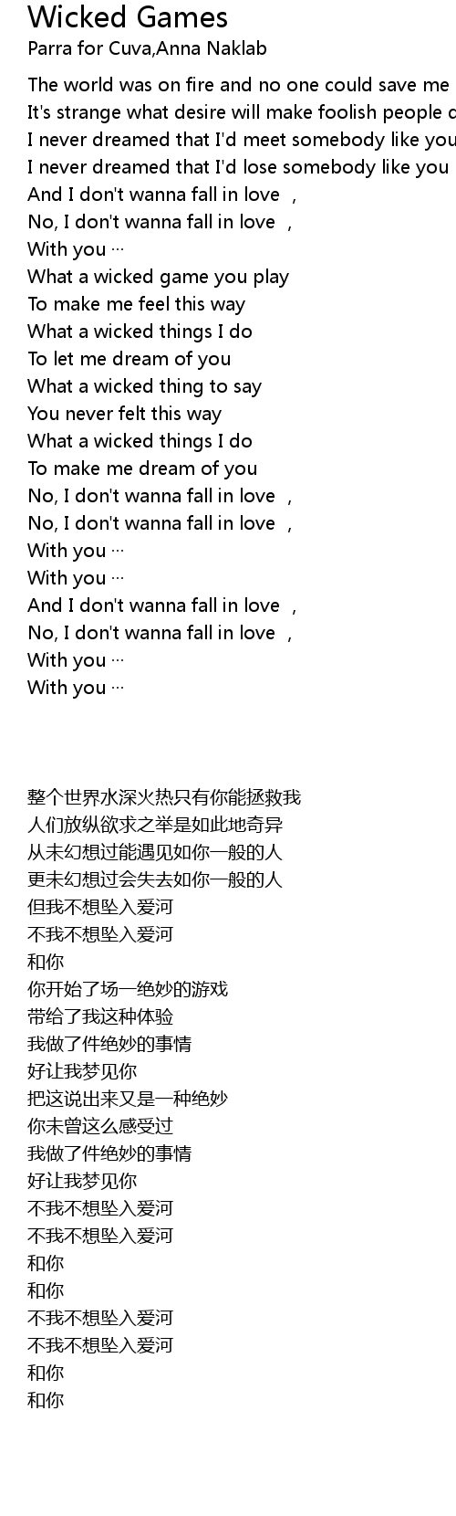 | Song | Wicked Games |