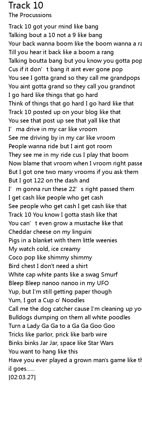 | [00:13.46] | Track 10 got your mind like bang |