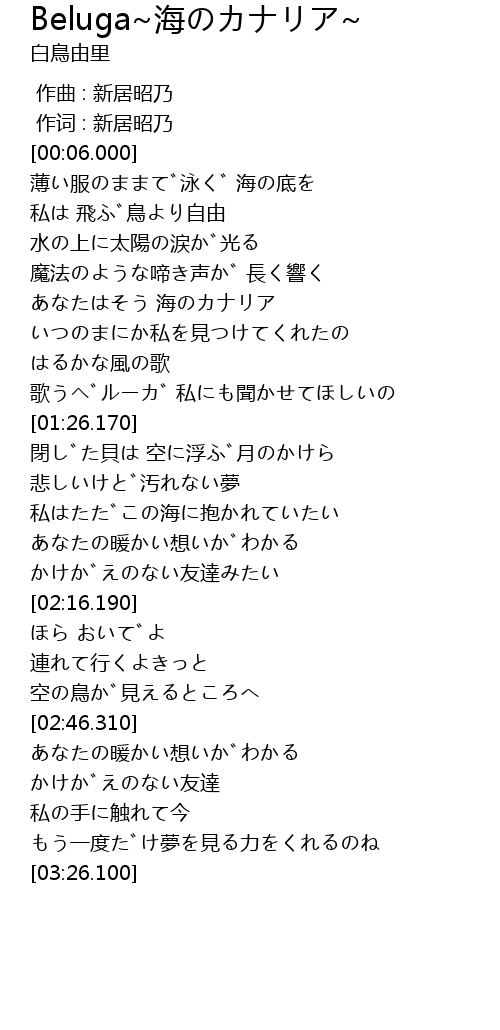 | [01:08.740] | 歌うベルーガ 私にも聞かせてほしいの |