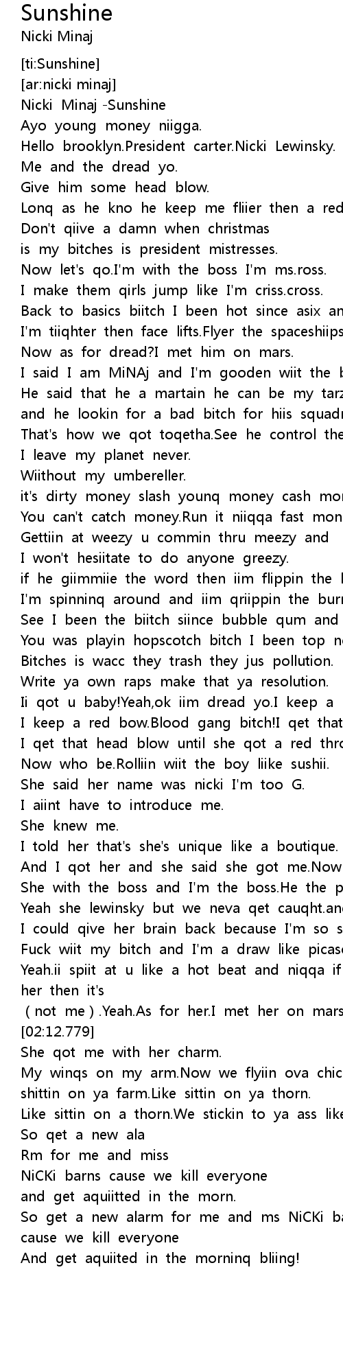 | [00:01.71] | Nicki Minaj -Sunshine |