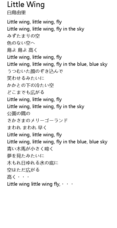 | Little wing, little wing, fly in the sky | |