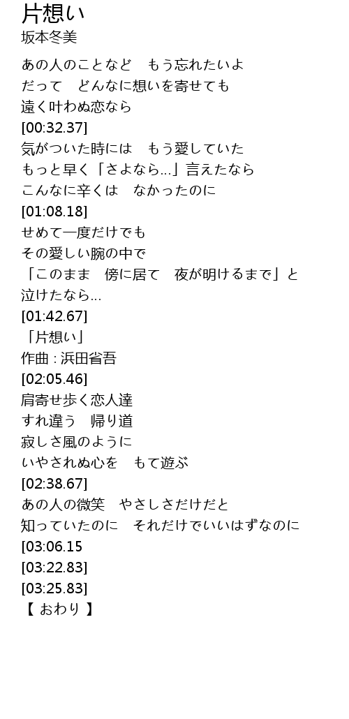| [03:15.04][03:06.15] | 愛を求めた 片想い |