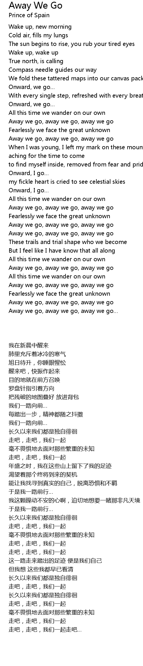| [00:25.43] | We fold these tattered maps into our canvas packs |
