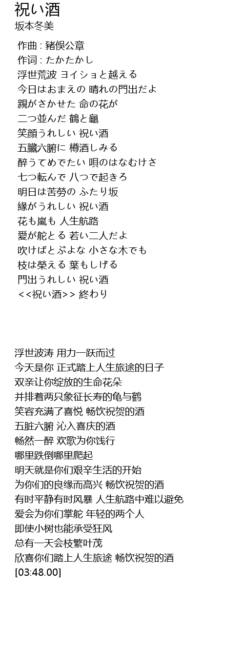 | [03:48.00] | <<祝い酒>> 終わり |