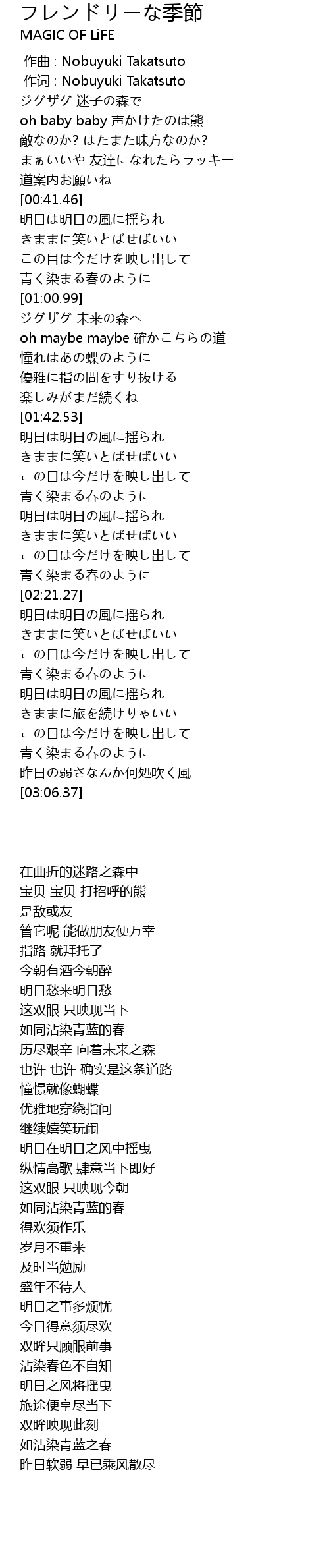 | [00:01.00] | 作词 : Nobuyuki Takatsuto |
