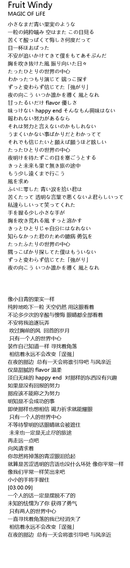 | [00:15.19] | 小さなまだ青い果実のような |