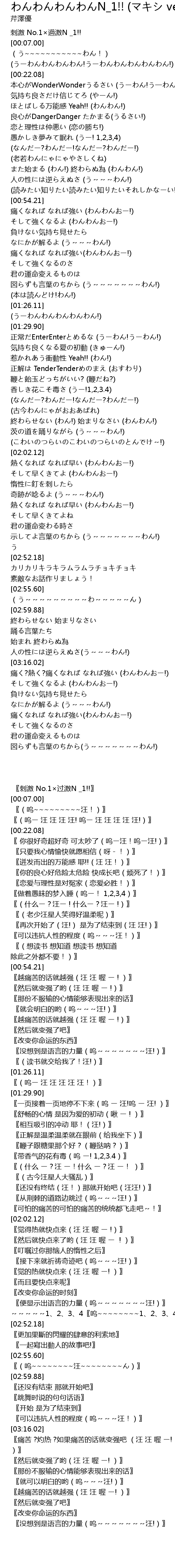 | [02:28.11] | 示してよ言葉のちから (う~~~~~~~わん!) |