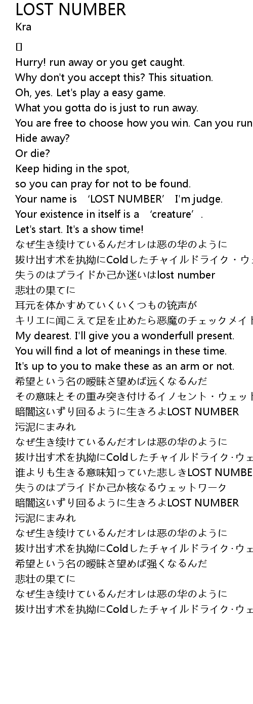 | 暗闇这いずり回るように生きろよLOST NUMBER | |