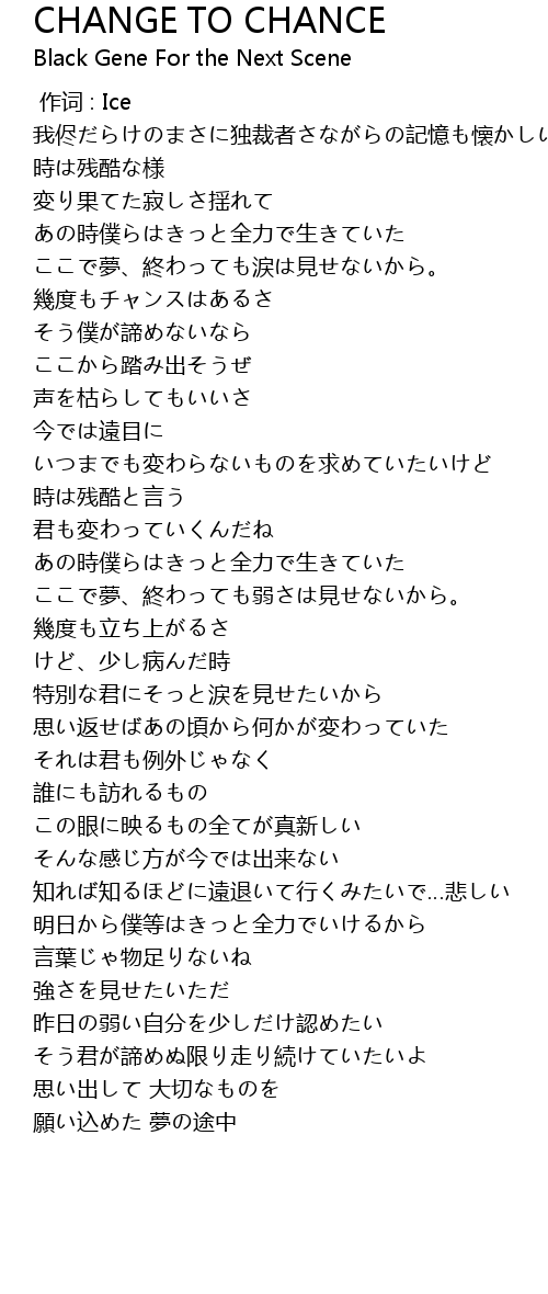 | [01:38.650] | いつまでも変わらないものを求めていたいけど |