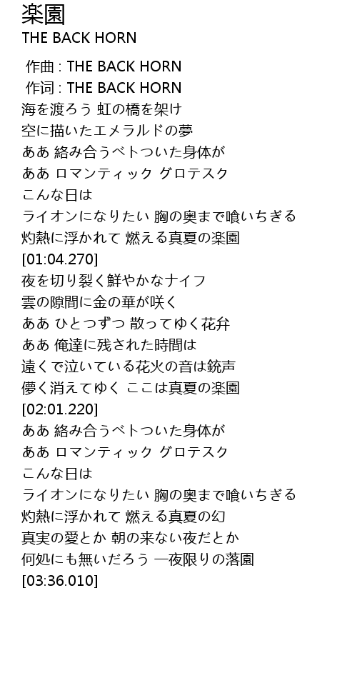 | [00:01.00] | 作词 : THE BACK HORN |
