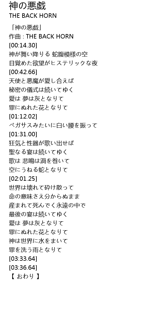 | [00:01.30] | 「神の悪戯」 |