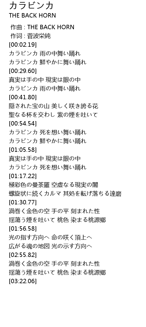 | [00:00.00] | 作曲 : THE BACK HORN |